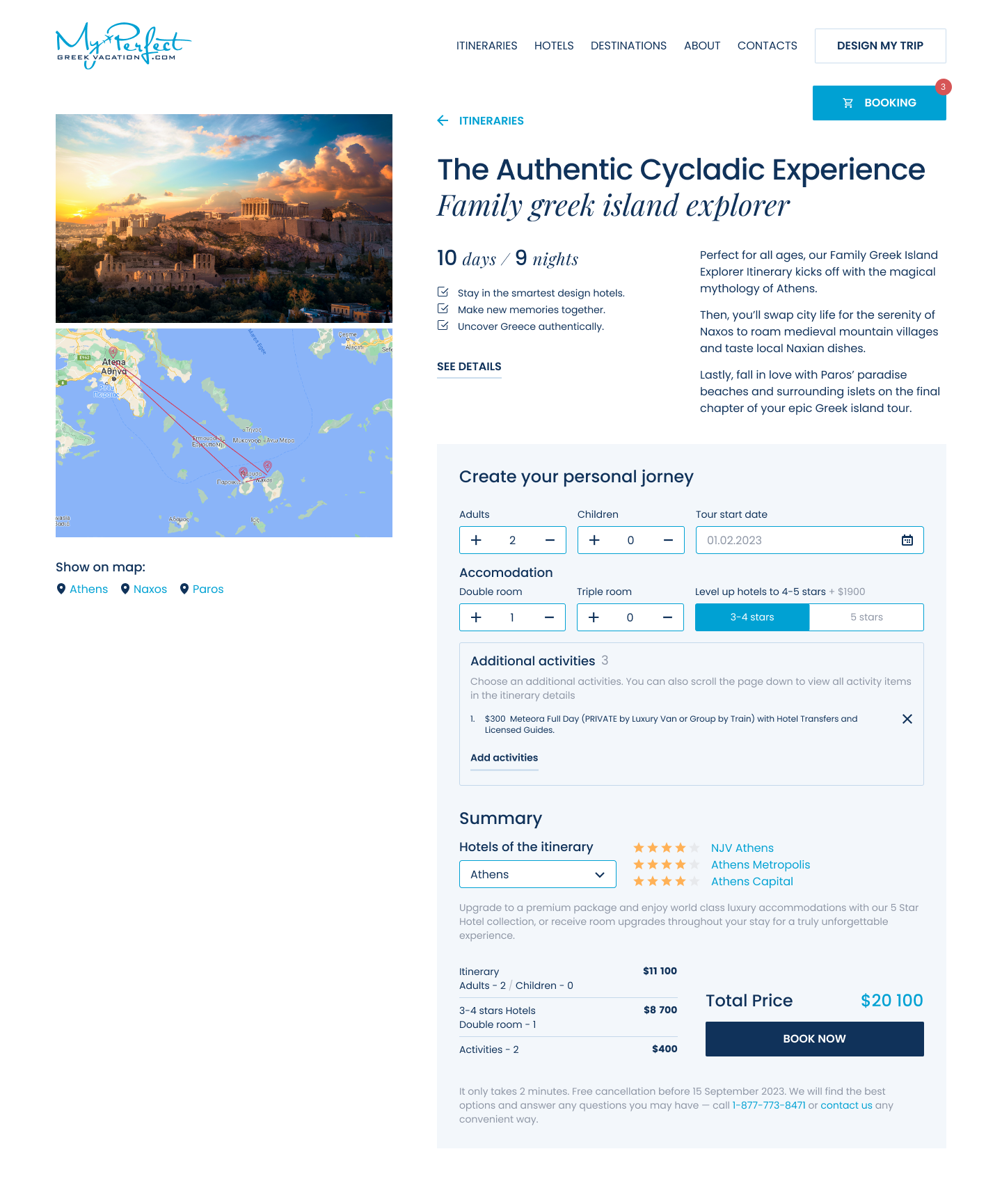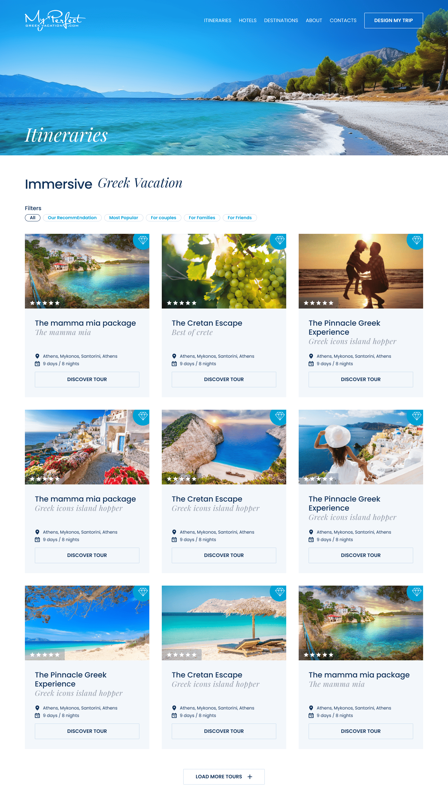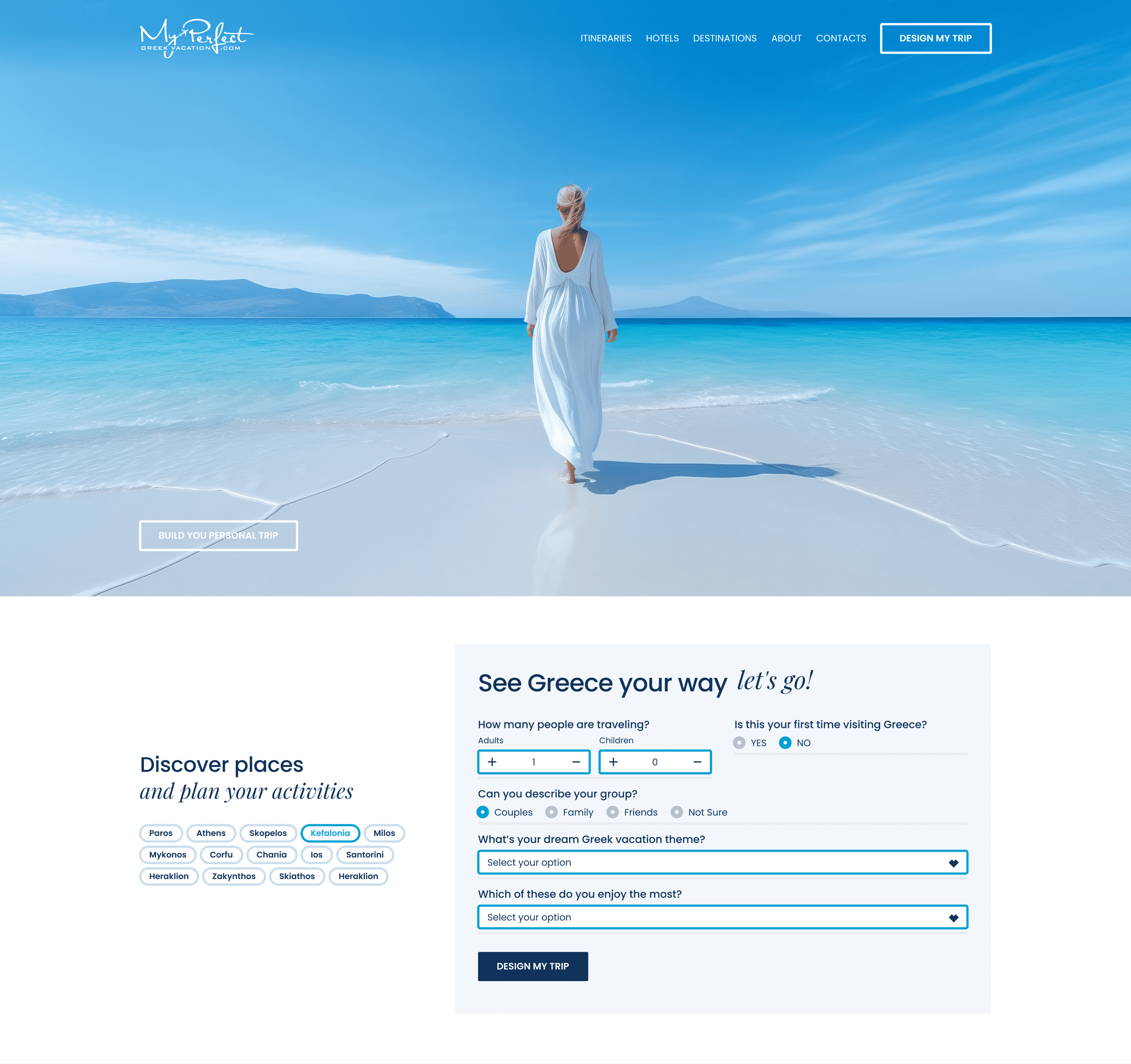 My Perfect Greek Vacation is a concept for a travel booking platform designed for users who want to go on a vacation but cannot yet define what exactly they are looking for.